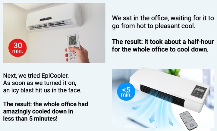 When you stack it up against the old-school AC, it’s three times as efficient, smaller, portable, and cools a room in under 5 minutes!
